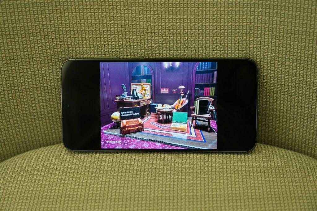 ที่นี้เราลองเปิดหน้าจอมาดูข้างในกันบ้าง หน้าจอ โดยเฉพาะหน้าจอ OLED ของ Samsung ถือว่าทำมาได้ดีอยู่ตลอด ในรุ่นนี้เองก็เช่นเดียวกัน เพราะซัมซุงยังคงใช้หน้าจอแบบ Dynamic AMOLED 2X ความสว่างสูงสุด 1,750 Nits กับรีเฟรชเรตสูงสุด 120Hz ทั้ง 3 รุ่น ทำให้ได้ภาพที่ทั้งลื่นไหล และสีสันสวยงามตามท้องเรื่องเลย โดยในรุ่น S23 และ S23+ ที่เป็นหน้าจอแบบราบเรียบ แม้จะไม่ได้มีความแตกต่างกับบน S22 Series มากนัก แต่ขอบของหน้าจอก็ไม่ได้รู้สึกว่ากินพื้นที่มากเกินไป