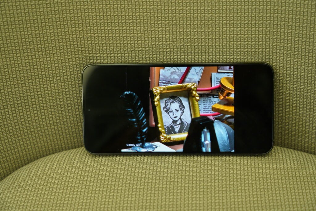 จากนั้นเราได้ลองถ่ายภาพในที่มืดสนิท มีแสงส่องมาเล็กน้อยเท่านั้น เราก็พบว่า ในรุ่น S23 Ultra การถ่ายภาพในที่มืดสนิทสามารถเก็บรายละเอียดได้ดี รวมถึงจับโฟกัสได้ดีกว่าในรุ่นที่แล้ว วัตถุที่อยู่ด้านหน้าไม่หลุดโฟกัสได้ง่าย ส่วนเรื่องสี ในบางจังหวะก็ให้สีที่ดี แต่ในบางจังหวะก็อาจจะมีต่างจากต้นฉบับอยู่เล็กน้อย